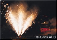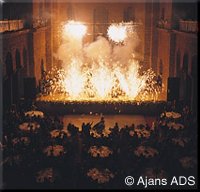 pyrotechnic equipments and stage effects in synchronization with light,