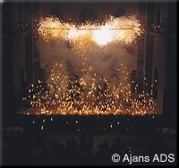 pyrotechnic equipments and stage effects in synchronization with light,